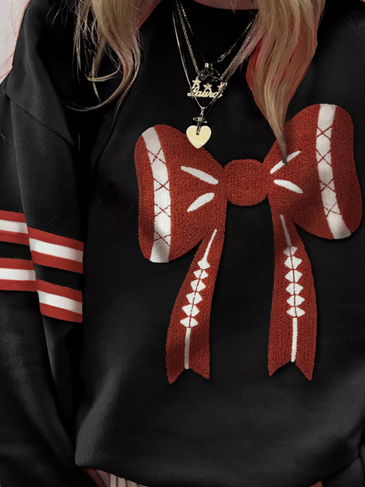 Bow Round Neck Dropped Shoulder Sweatshirt